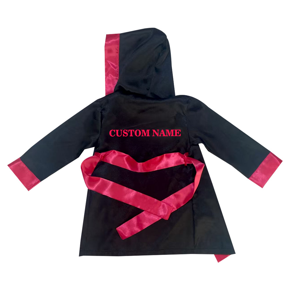 Personalized boxing set of robe with shorts (Black and Fuchsia)