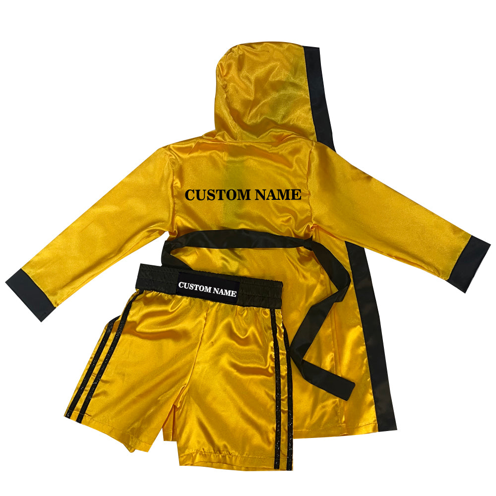 Personalized boxing set of robe with shorts (Gold and Black)